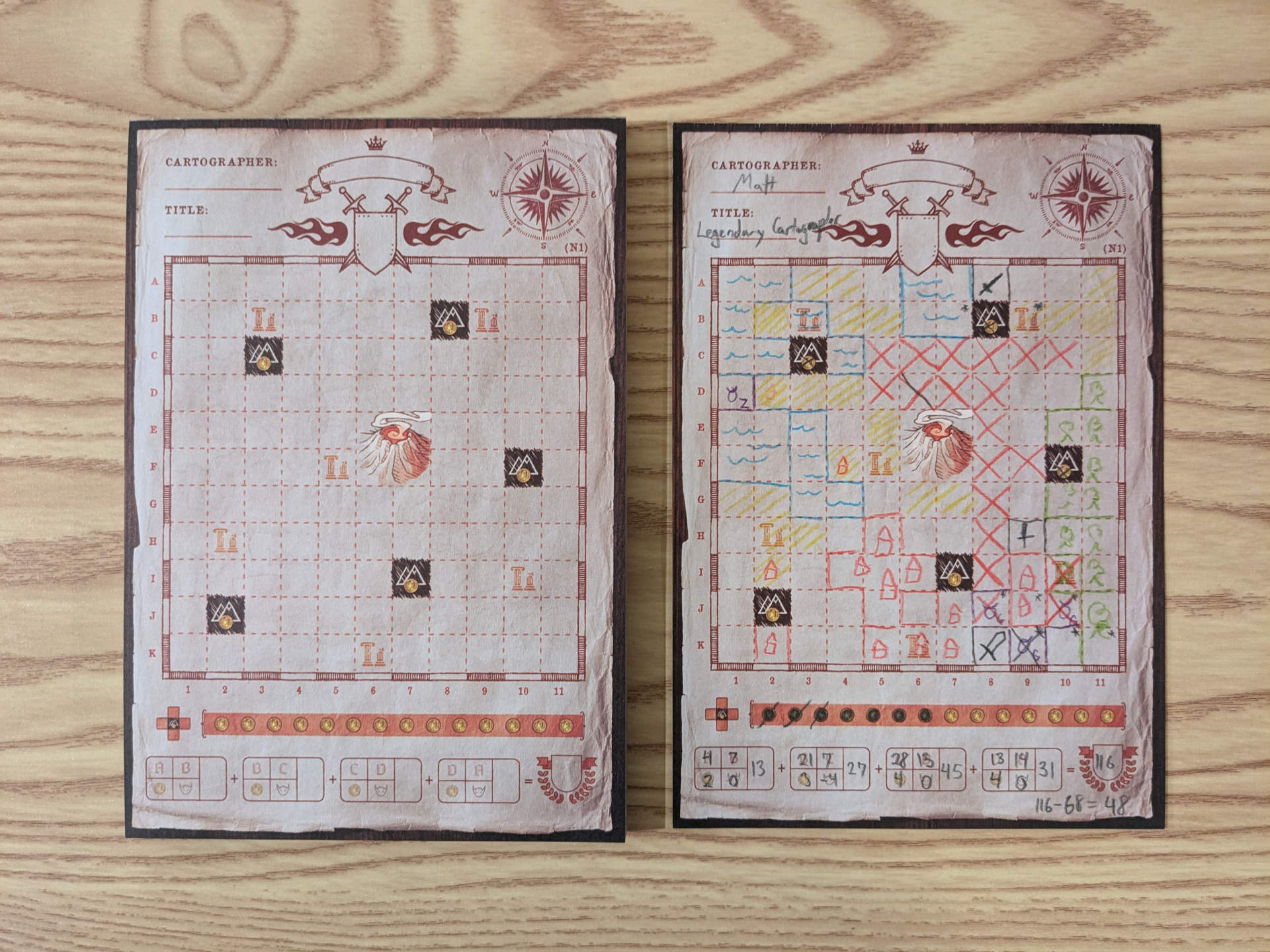 Surprisingly, lava destroying your map spaces isn’t as bad as it sounds. For some edicts, it can be beneficial to cover more spaces on your map. Fill more spaces can also make it difficult to fit some shapes which can be beneficial like avoiding an ambush. Also, the volcano cards add 0-1 time to a season when drawn so you’ll also find that your games will be higher-scoring because of that.